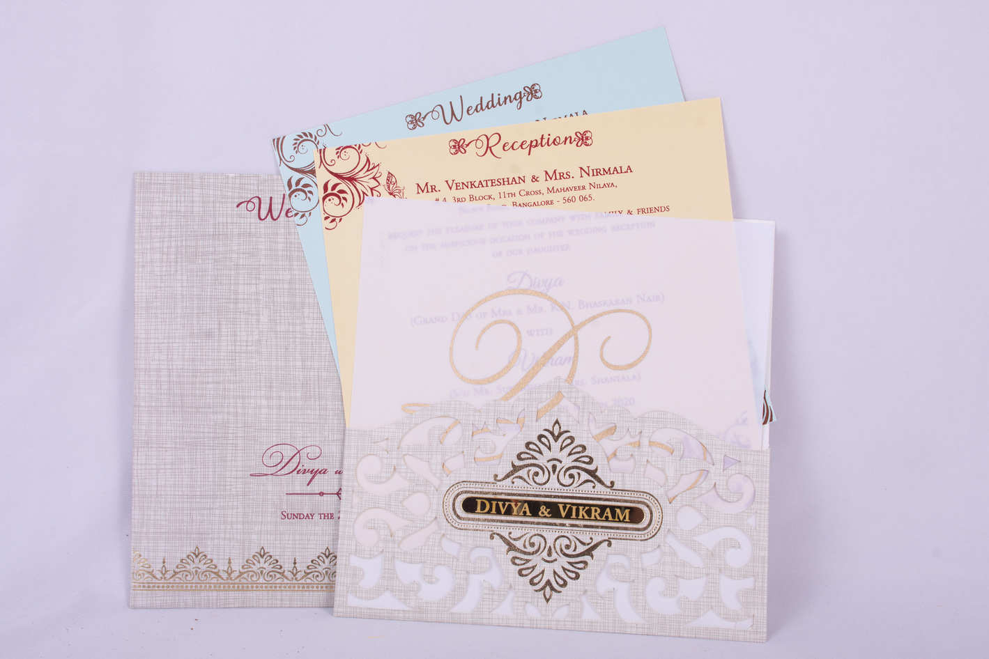 We provide attractive and superior quality Invitation cards for Wedding, House warming ceremony and many more occasions.
