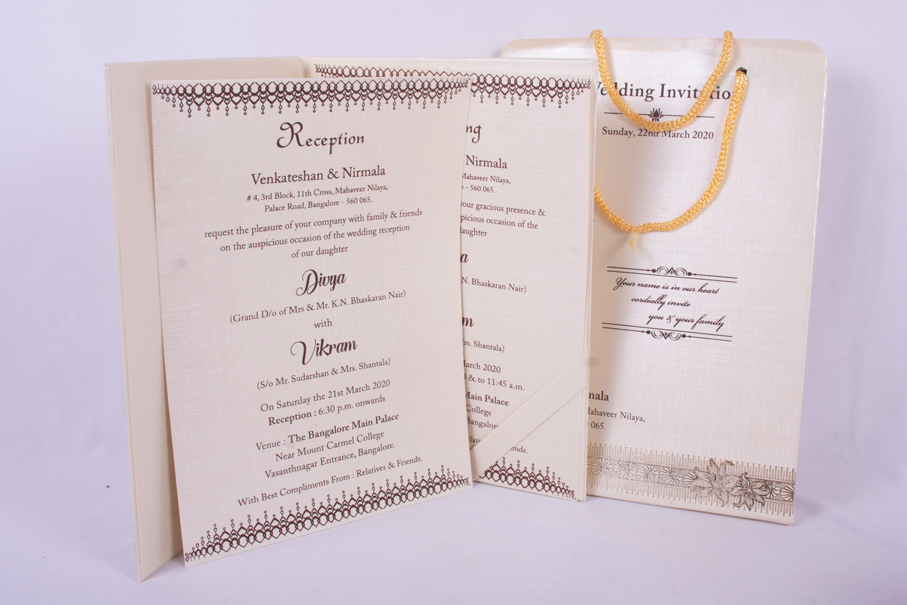 We provide attractive and superior quality Invitation cards for Wedding, House warming ceremony and many more occasions.