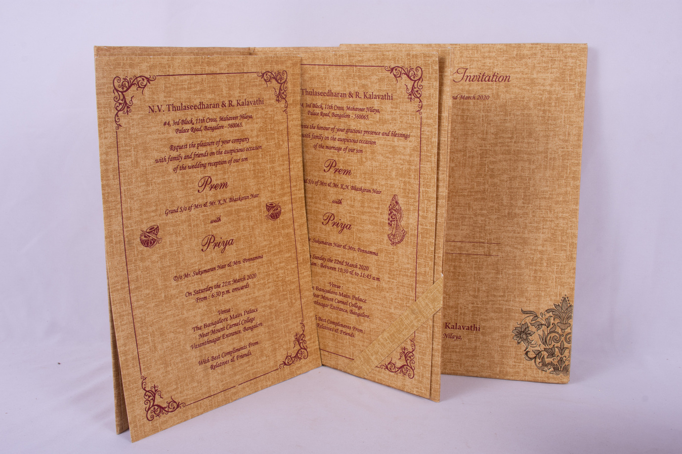 We provide attractive and superior quality Invitation cards for Wedding, House warming ceremony and many more occasions.