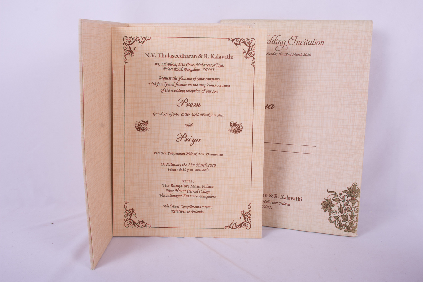 We provide attractive and superior quality Invitation cards for Wedding, House warming ceremony and many more occasions.