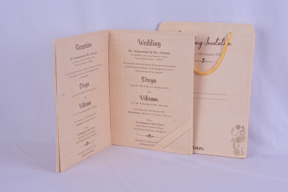 We provide attractive and superior quality Invitation cards for Wedding, House warming ceremony and many more occasions.
